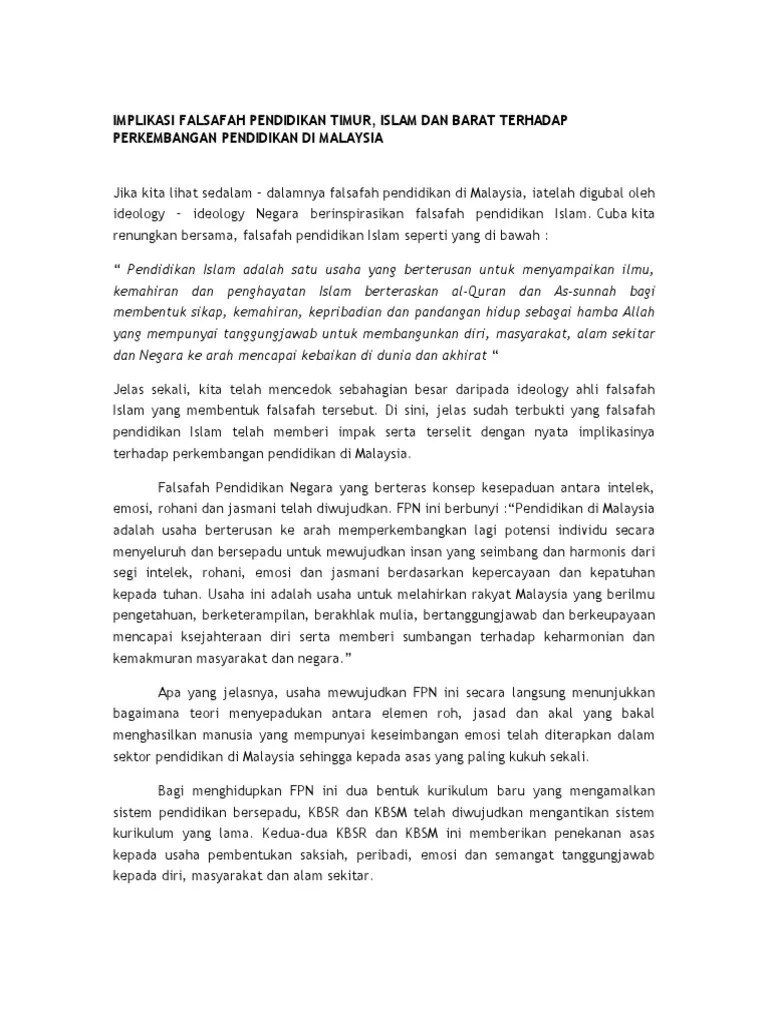 Falsafah dan pendidikan di malaysia falsafah pendidikan timur opsyen :